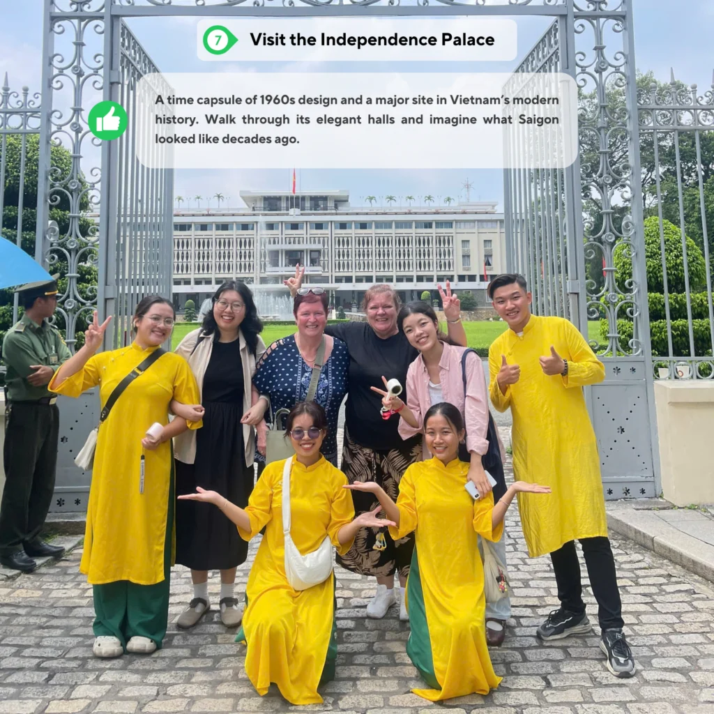 A time capsule of 1960s design and a major site in Vietnam’s modern history. Walk through its elegant halls and imagine what Saigon looked like decades ago.