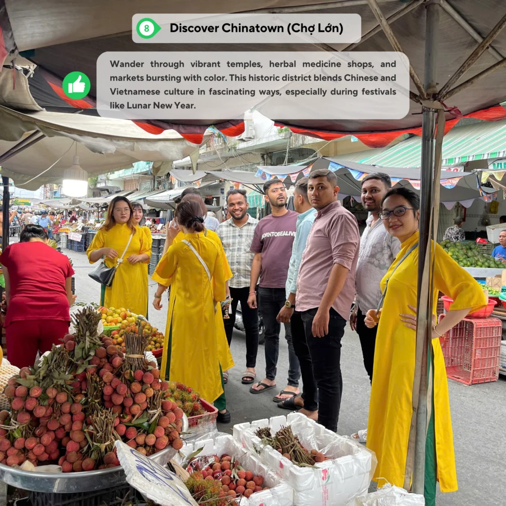 Wander through vibrant temples, herbal medicine shops, and markets bursting with color. This historic district blends Chinese and Vietnamese culture in fascinating ways, especially during festivals like Lunar New Year.